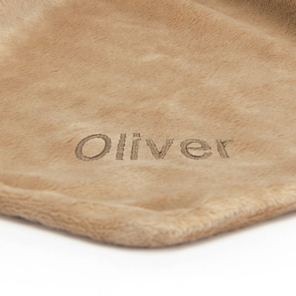 Bartholomew Bear Soother is a sweet tiny Bartholomew Bear holding on to a soft toffee blanket perfect for little hands to hold. Choose from a selection of fonts and thread colours to personalise the blanket and create an extra special gift.